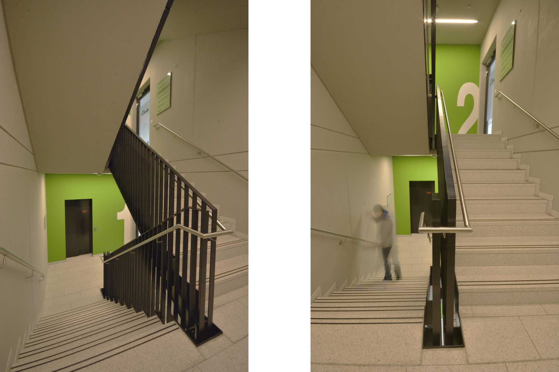 Der Baukörper ist eine Stahl-Betonkonstruktion. Die Fassade besteht aus einer Aluglasfassade im Erdgeschoss, sowie einer Putzfassade in den drei Obergeschossen. Die Flachdachflächen sind als Gründach ausgeführt und die Schrägdachbereiche mit Stehfalz Aluminium verkleidet.