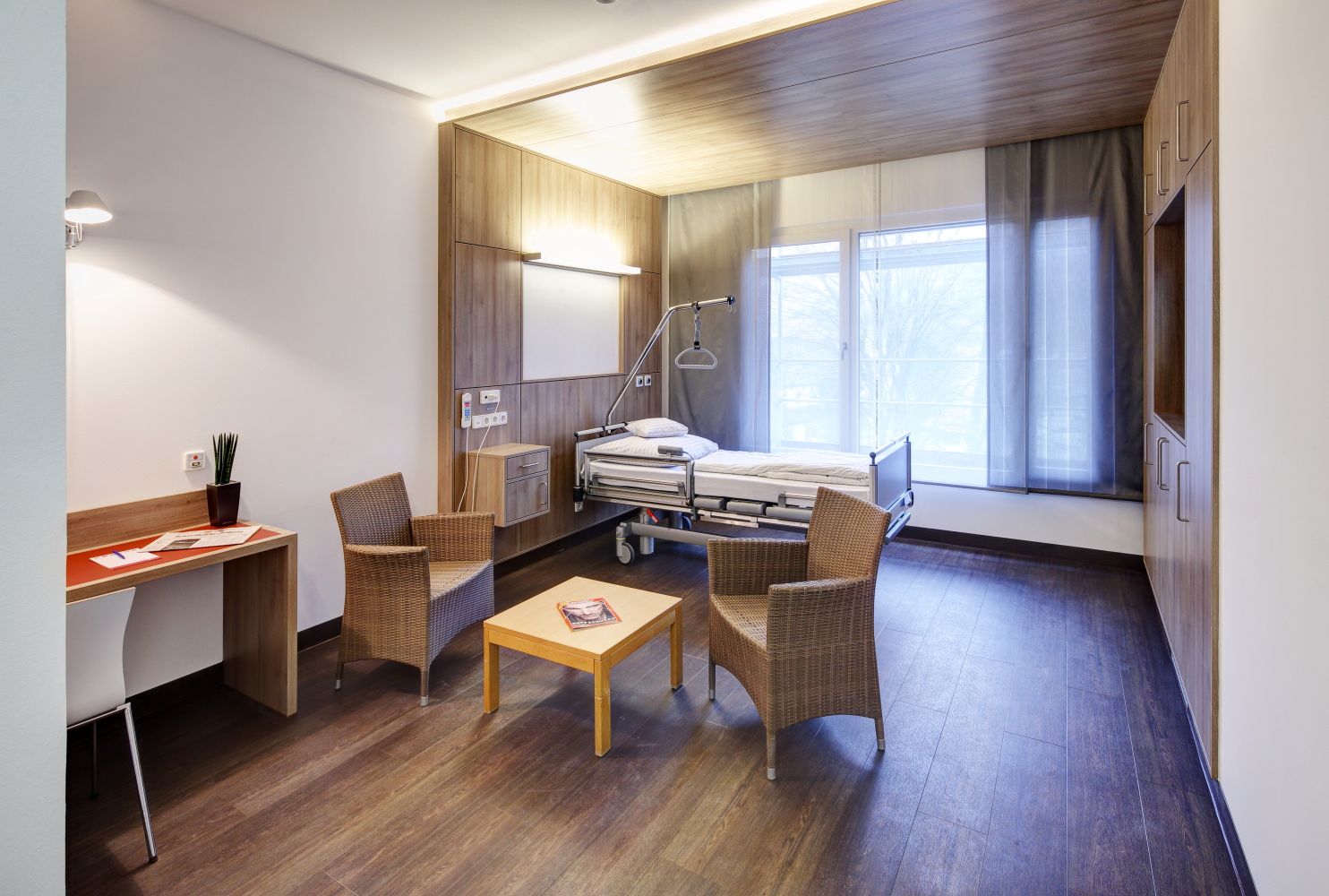 Umstrukturierung und Aufstockung des bestehenden Bettenhauses / Neubau von 35 Patientenbetten, 1 und 2 Bett Zimmern im Hotelstandard.