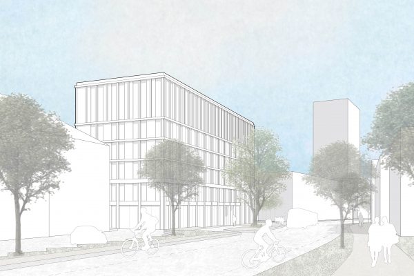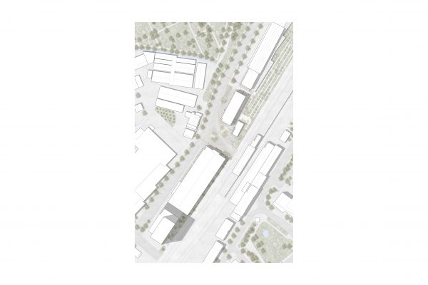 Das Hotel wird hier mit gebührendem Abstand zu öffentlichen Verkehrswegen platziert. Sichtbezüge zur Kernstadt wurden gebildet, ebenso Bezüge zur entstehenden City Nord mit all Ihren Facetten. Es wurde eine Verbindung zwischen dem Platz mit seinen „ RuheInseln „ und den verschiedenen Kommunikationszonen und den noch brachliegenden Flächen im Nord Osten des Wettbewerbsgebietes wurden geschaffen, welche dadurch ökologisch aufgewertet werden.Dadurch entstehen Flächen und Bereiche unterschiedlicher Öffentlichkeit und Nutzbarkeit.
