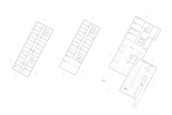 Das Projekt „ a night in the life „ schlägt zwischen den Bahngleisen und der Burkhardt u. Weber Straße einen 7 geschossigen monolithischen Gebäudekubus vor.