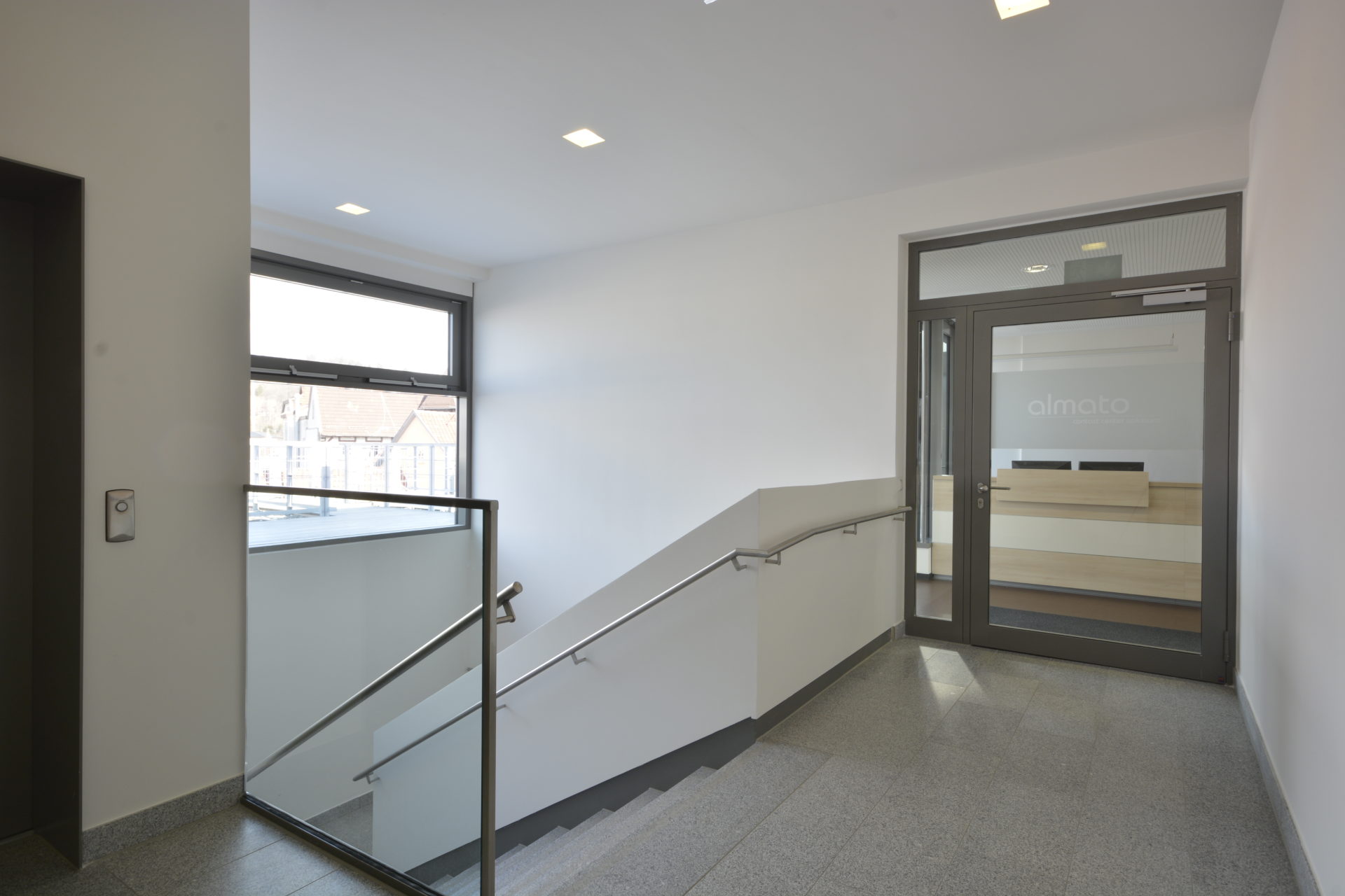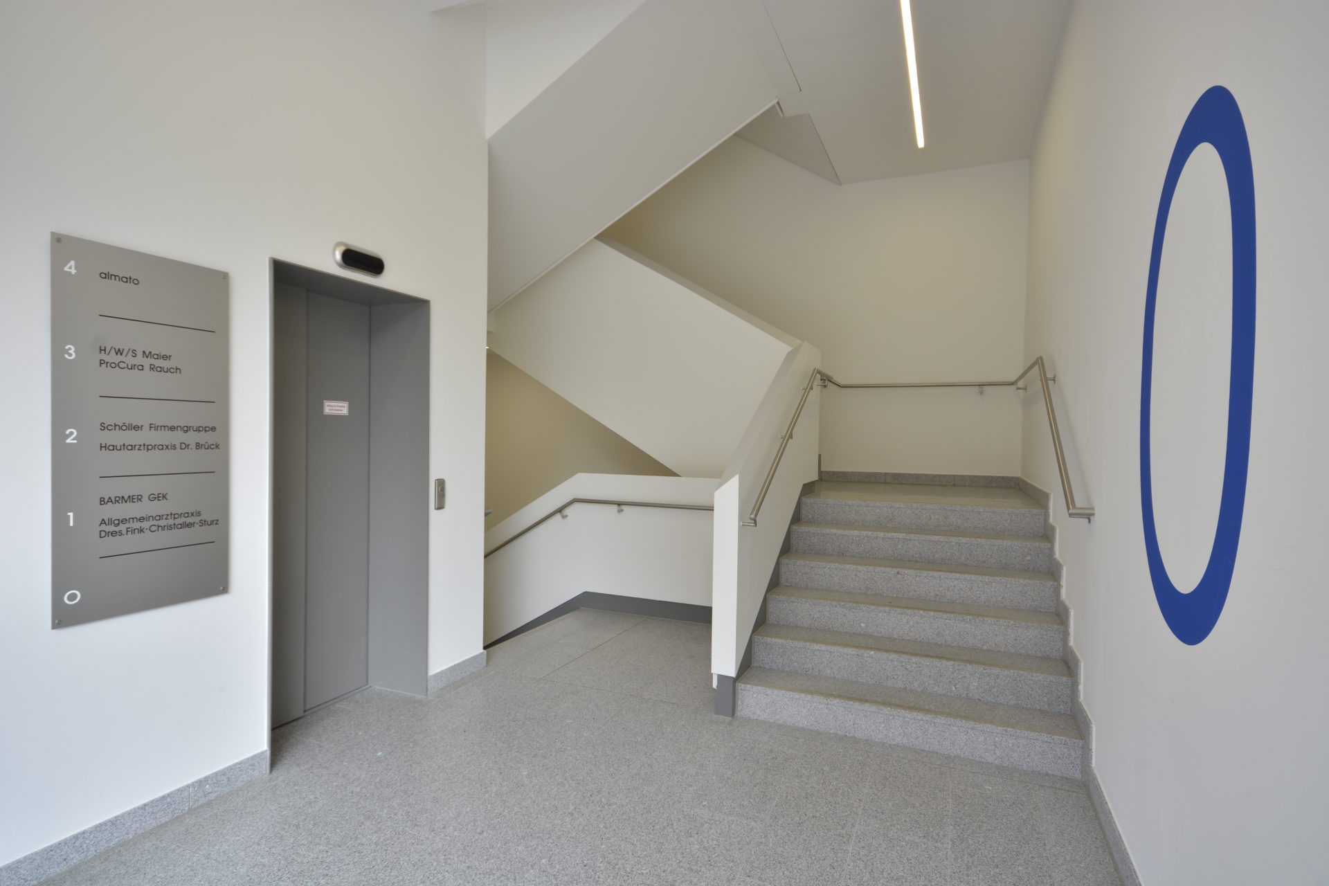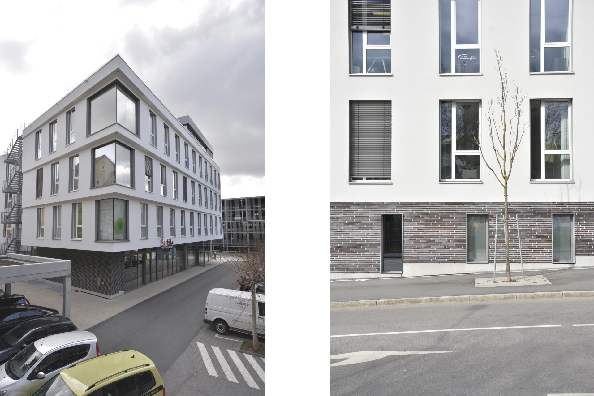 Bei der Obere Wässere 9 handelt es sich um einen 5-geschossigen Geschäftshausbau inklusive zurückgesetztem Attikageschoss. Das Gebäude verfügt über die teilweise Ausbildung eines Untergeschosses. Der Baukörper ist eine Stahl-Betonkonstruktion. Die Fassade besteht aus einer Aluglasfassade im Erdgeschoss und Attikageschoss, sowie einer Putzfassade in den drei Obergeschossen mit Holzfensteröffnungen. Ein innenliegendes, nicht überdachtes Atrium in den Obergeschossen sorgt für die natürliche Licht- und mögliche Frischluftversorgung der Räume zu diesem Atrium hin. Das großzügige Treppenhaus mit Aufzug erschließt alle sechs Geschosse des Gebäudes. Die an der Nordseite zum Grundstück Albstrasse 22 situierte Stahltreppe dient als zweiter baulicher Fluchtweg. Geheizt und gekühlt wird das Gebäude durch eine Luftwärmepumpentechnik auf Multisplittbasis. Gemeinsam mit dem durch ein bauphysikalisches Gutachten entwickelten energetischen Konzept werden durch dieses Haustechniksystem Werte erreicht, welche die Vorgaben der gültigen Energieeinsparverordnung mehr als erreichen.