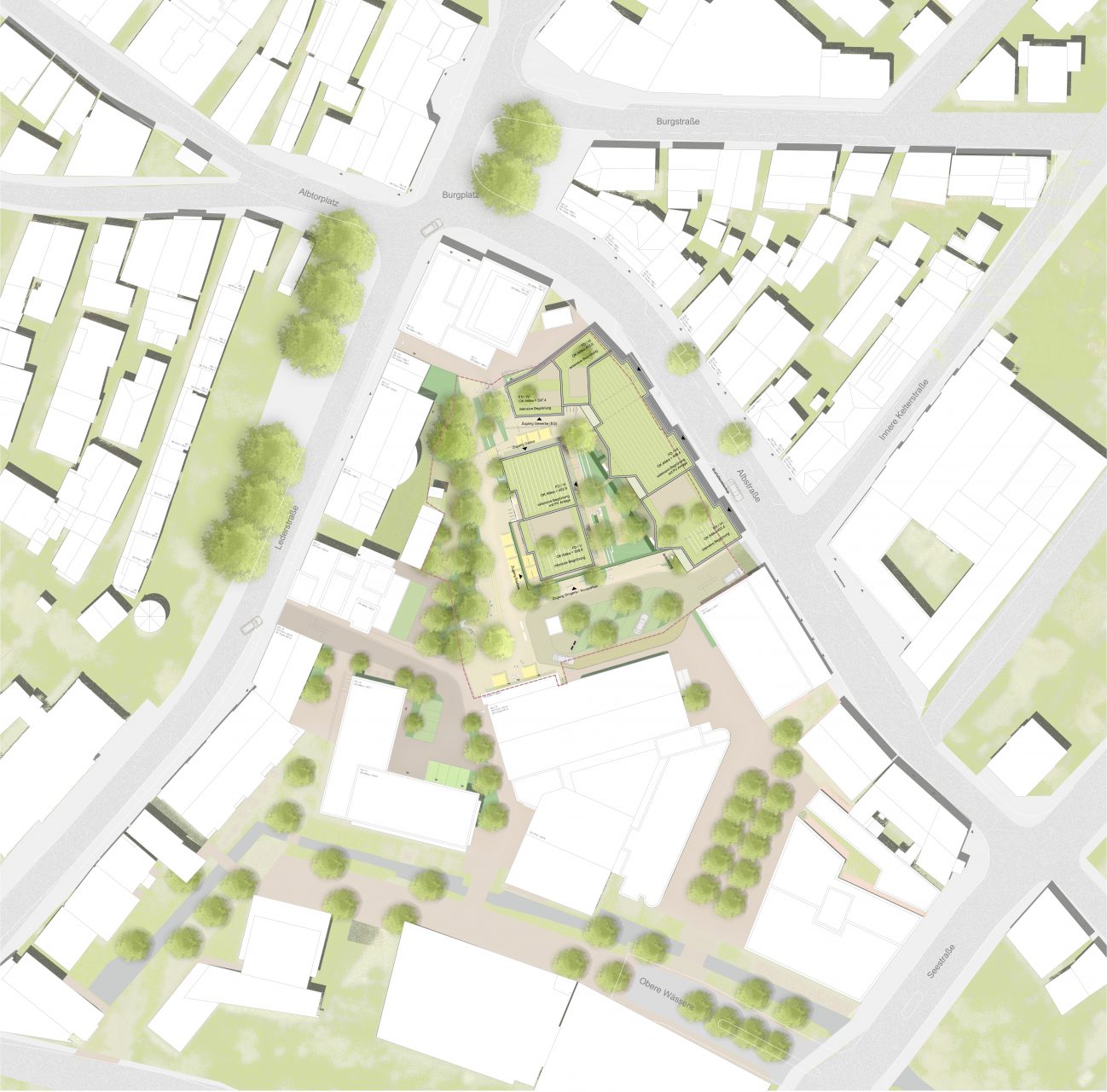 Programm: Mehrgeschossiger Wohnungsbau mit Gastronomie und Einzelhandelsflächen